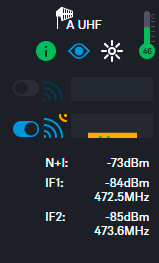 . A antena foi atribuída ao canal RF e qualquer eventual interferência é indicada pelo ícone.