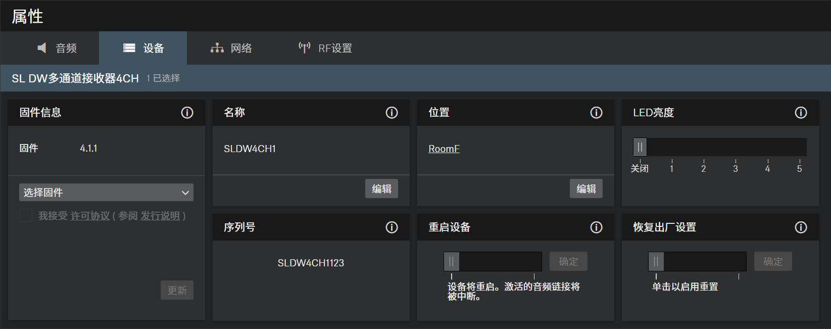 调节所选接收器显示亮度的滑块。