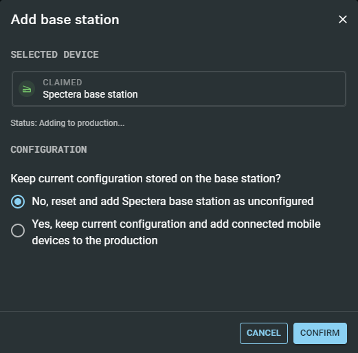 - 使用配置的密码对 Base Station 进行身份验证(请参见 声明单个设备(LinkDesk))。