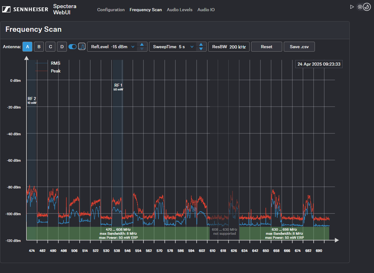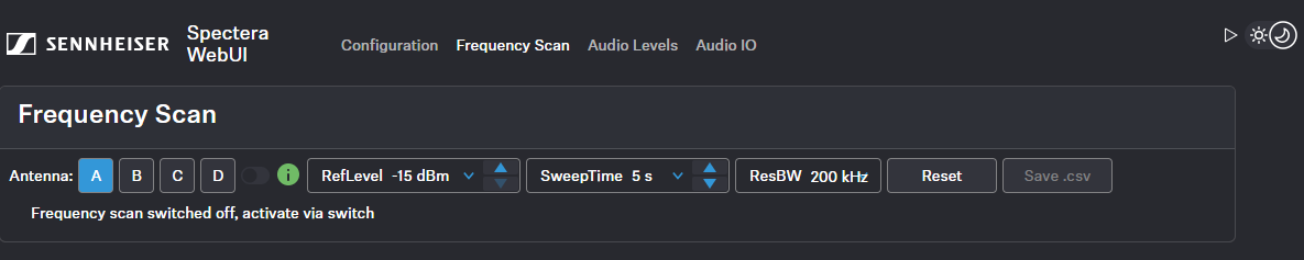 注意,扫描前请确保天线未分配给任何RF通道(请参见为RF通道分配天线)。