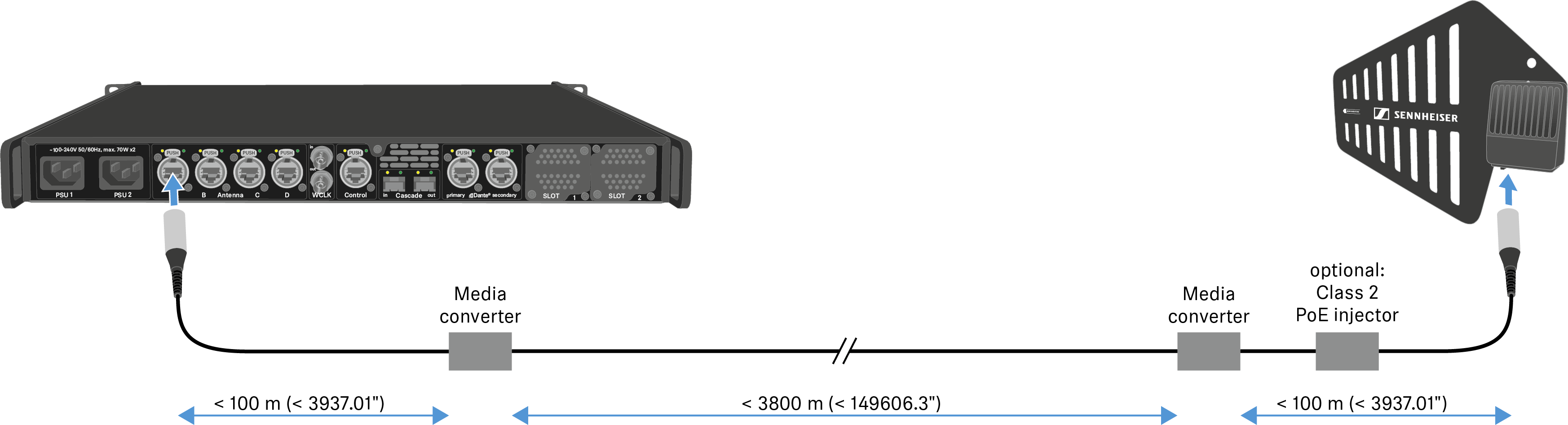 Sennheiser对推荐的转换器进行了4公里(157480.31英寸)全距离测试。