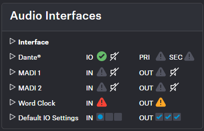 内置的采样率转换器可用于将输出转换为预定频率,并为任何音频通道生成自定义采样率。以下设置适用于MADI 1、MADI 2和字钟接口: