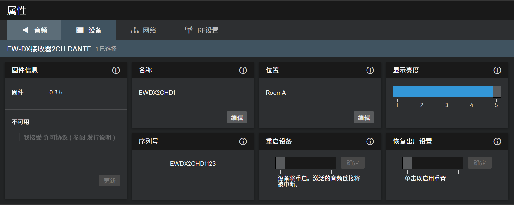编辑设备的名称。名称将存储在设备上。如果您在设备本身上更改名称,则名称会相应地在此处显示。