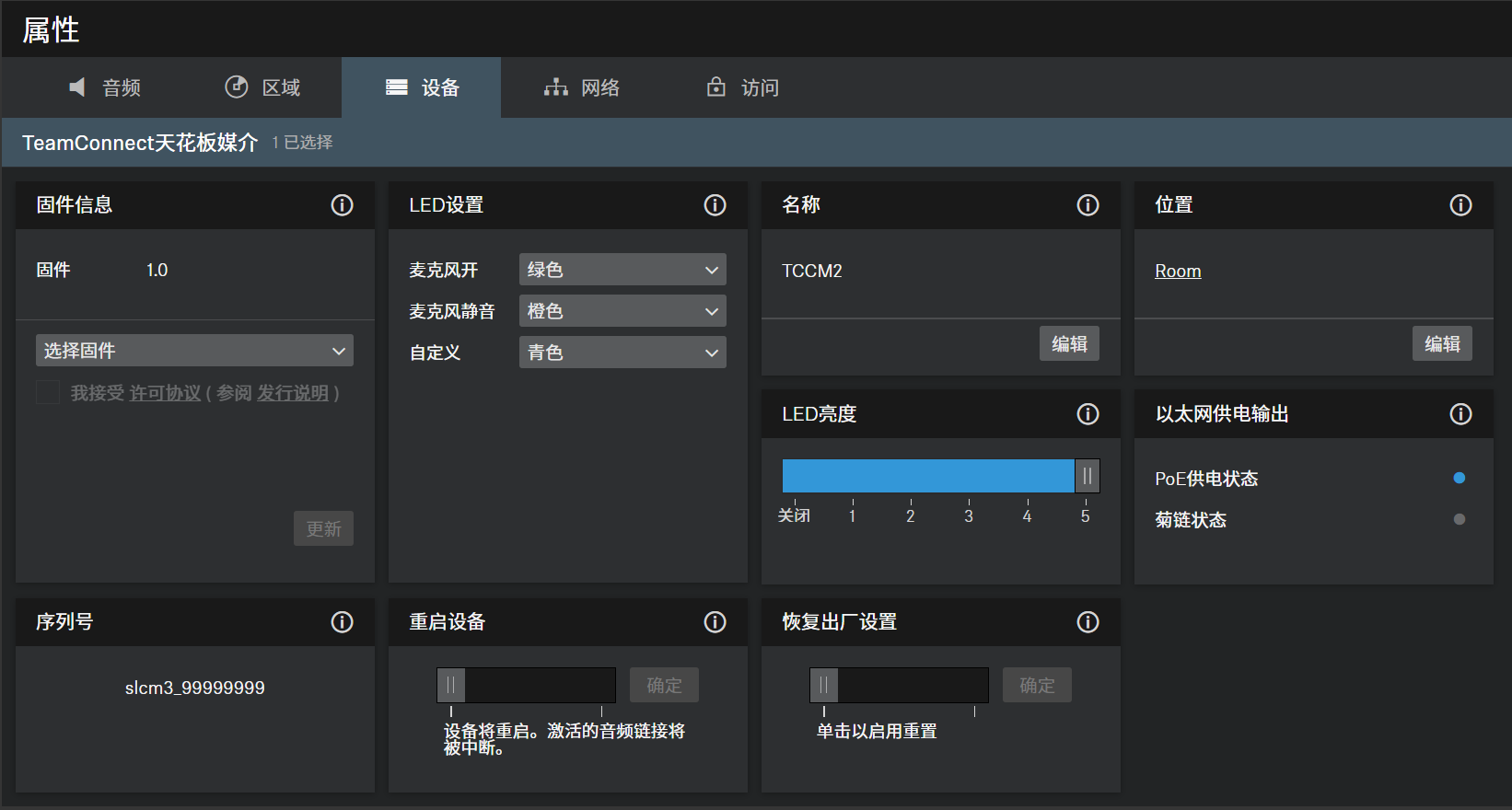 调整天花板式麦克风阵列角上四个LED的颜色。