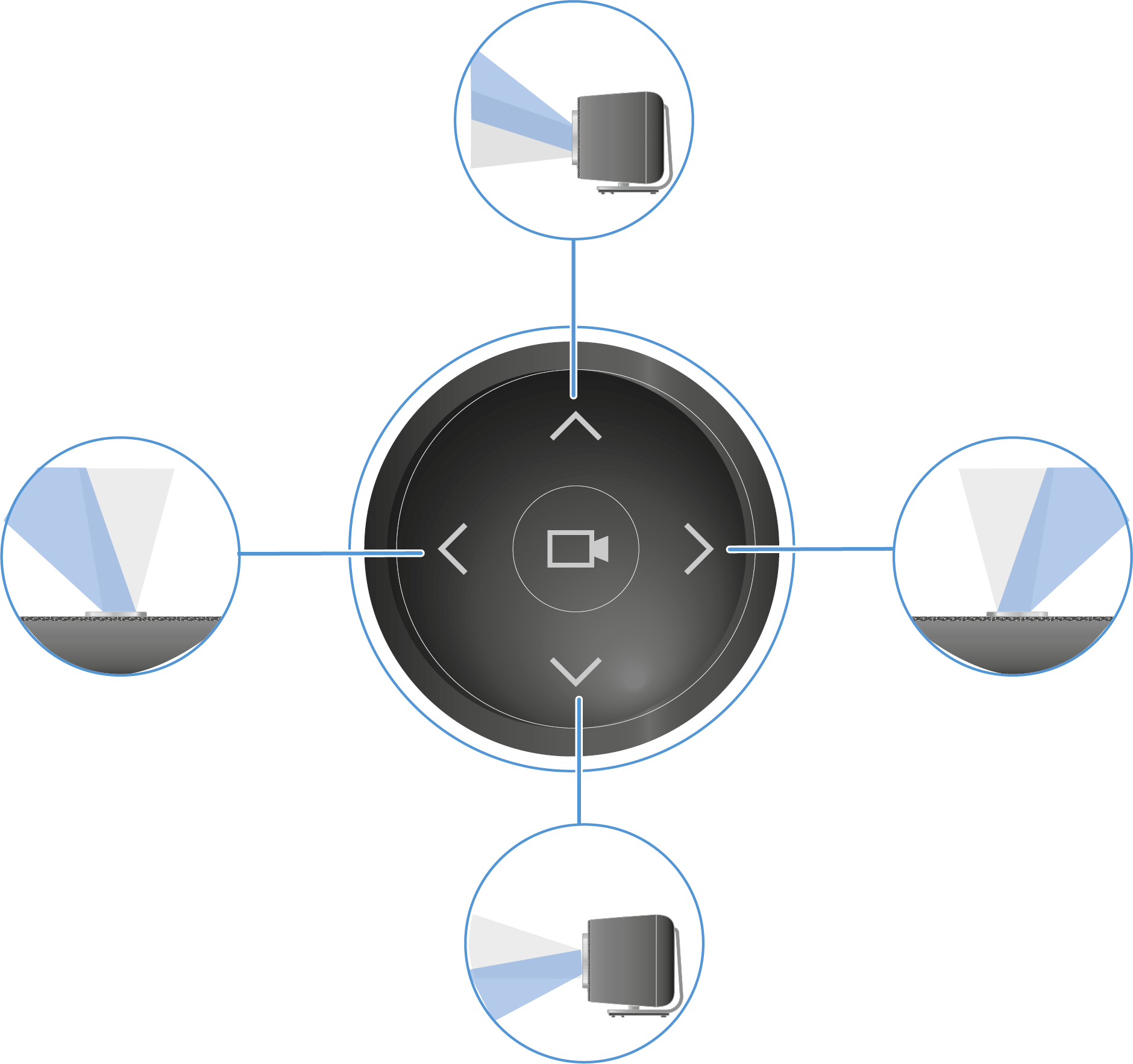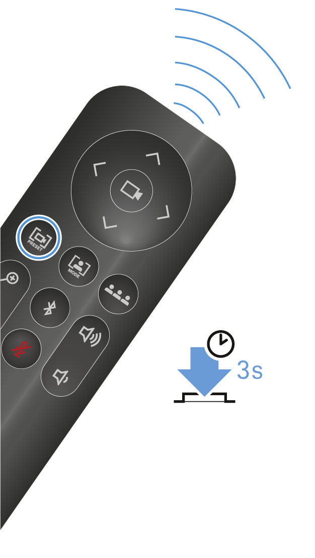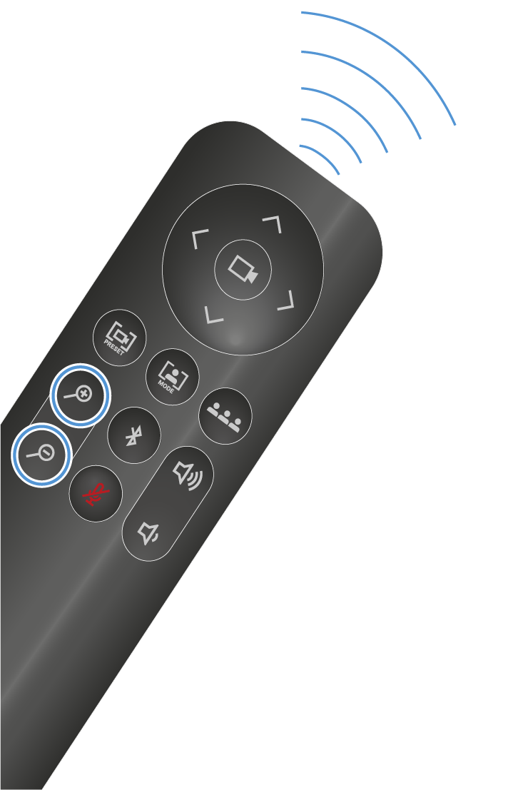 您可以借助遥控器设置摄像头角度和摄像头变焦,以及存储和调用摄像头位置。